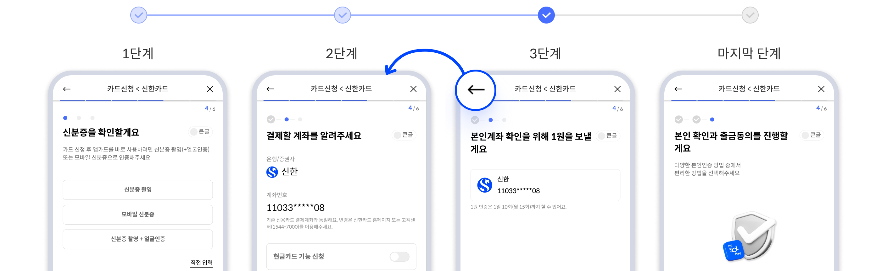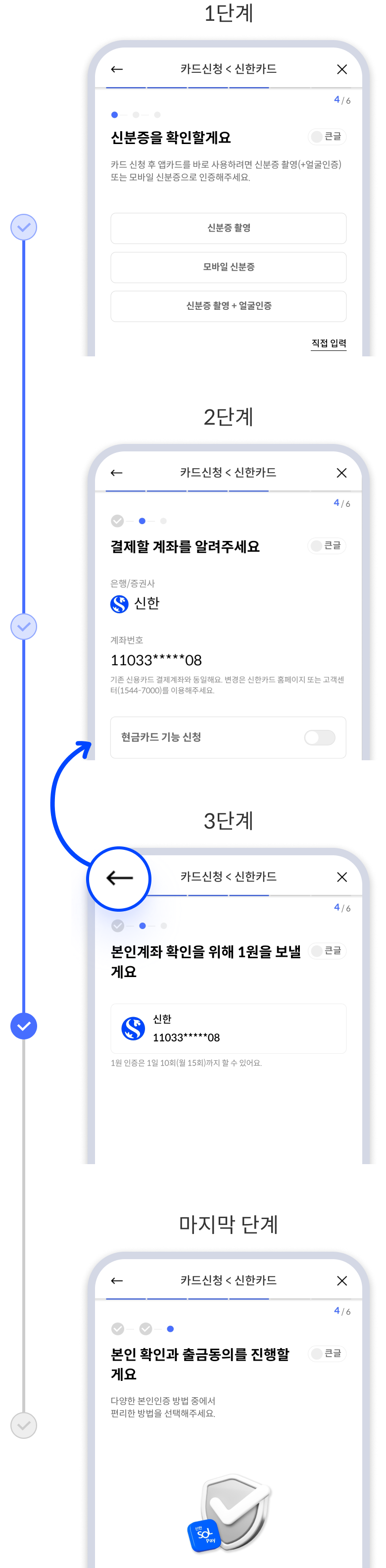 카드 신청 각 단계에서