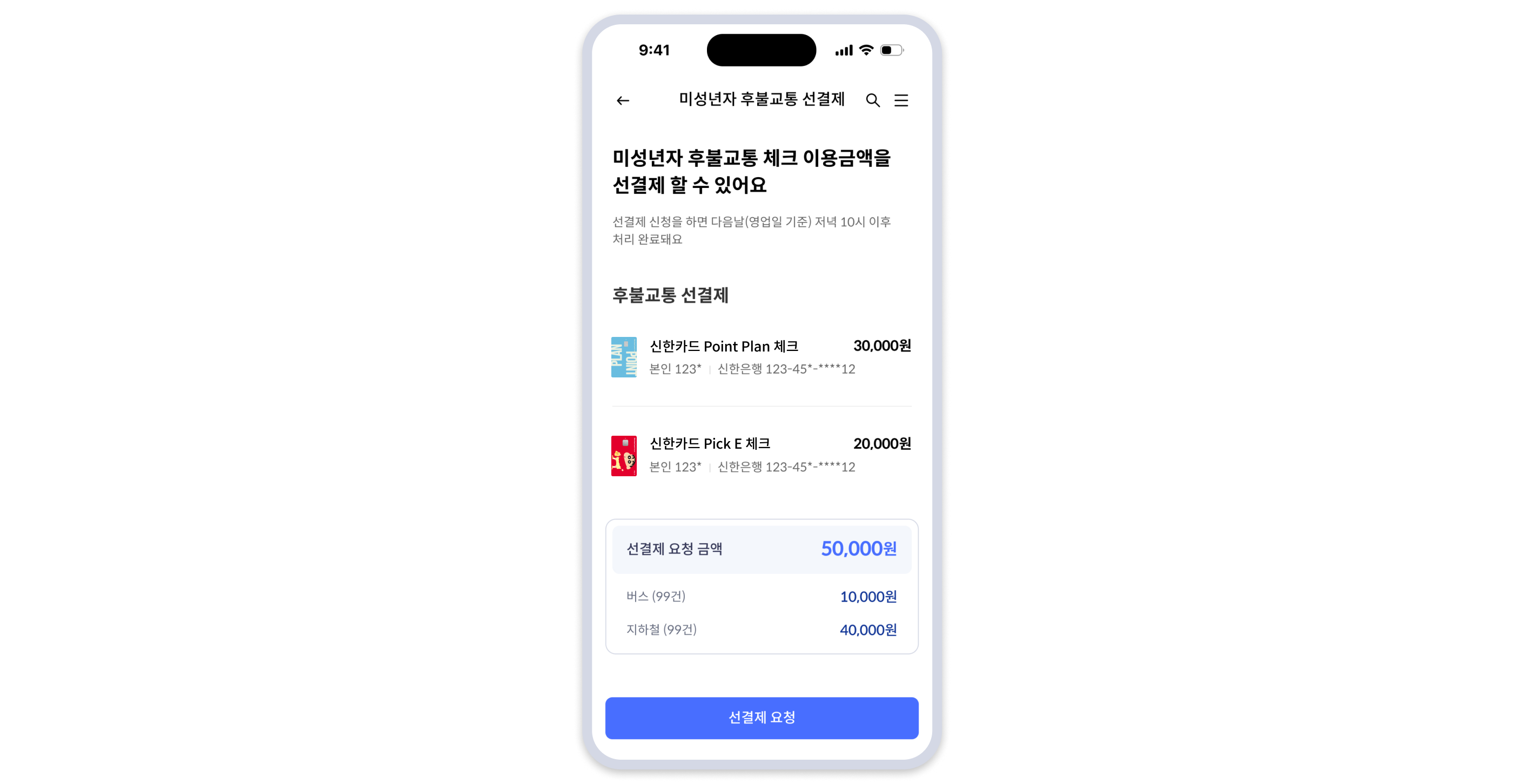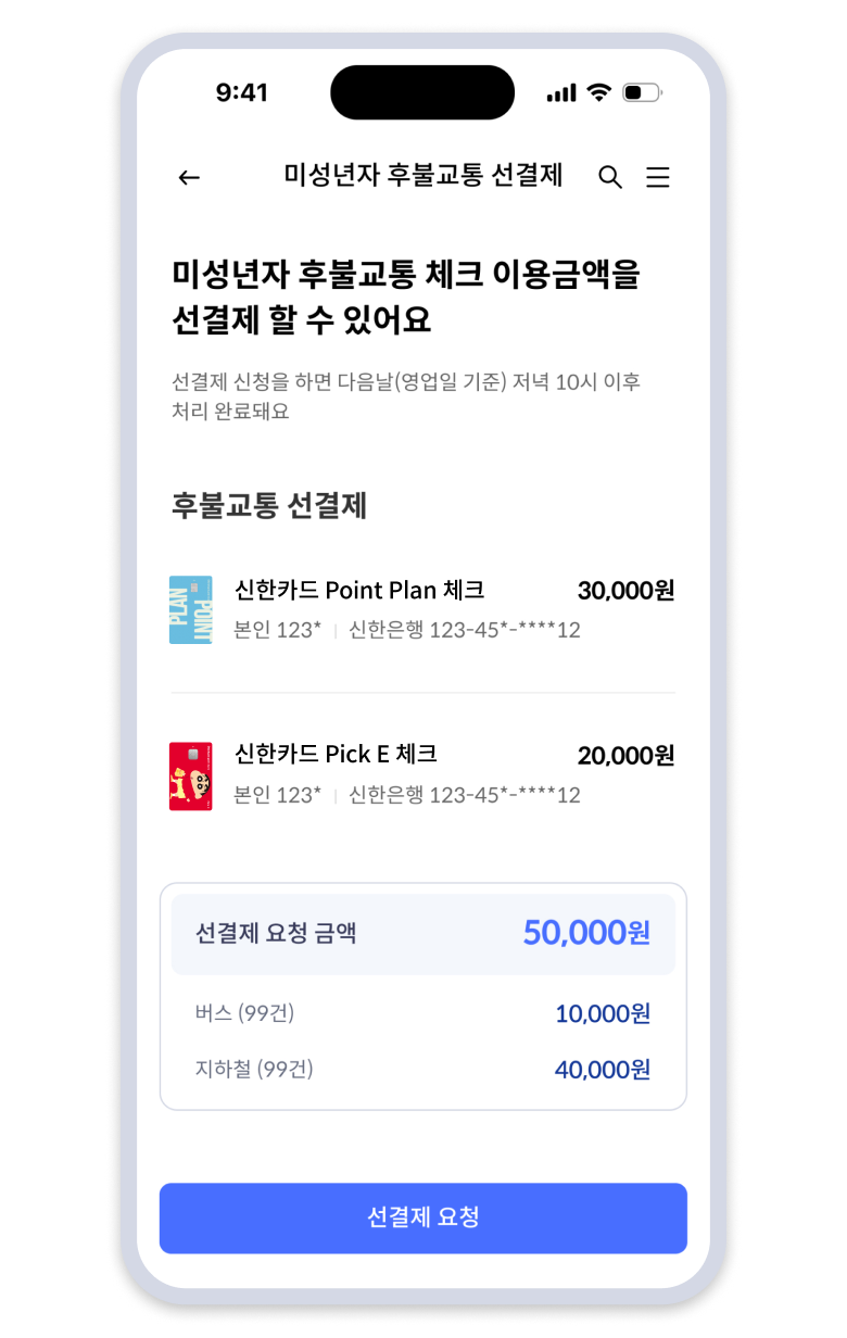 미성년자 후불교통 체크카드 선결제가 편리하도록 개선